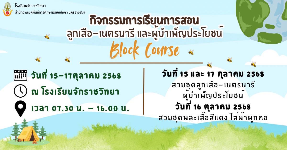เตรียมพร้อมกันนะ ม.1 ม.2 และ ม.3 กิจกรรมการเรียนการสอน Block Course ลูกเสือ–เนตรนารี และผู้บำเพ็ญประโยชน์