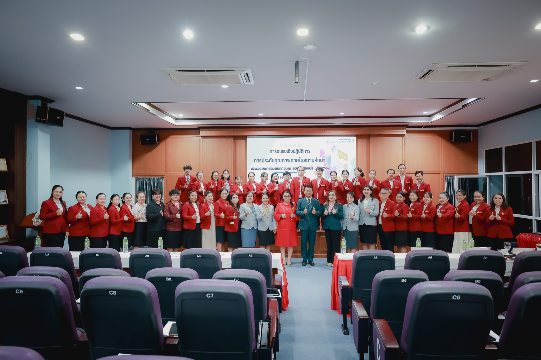 วันที่ 14 ตุลาคม พ.ศ. 2568 ดร.ศราวุธ ศรีหาบุญทัน ผู้อำนวยการโรงเรียนจักราชวิทยา ให้เกียรติเป็นประธานในพิธีเปิดโครงการอบรมเชิงปฏิบัติการประกันคุณภาพภายในสถานศึกษา เพื่อรองรับการประเมินภายนอก รอบที่ 5 ประจำปีงบประมาณ 2569 พร้อมด้วย รองผู้อำนวยการโรงเรียน และคณะครู เข้าร่วมการอบรมอย่างพร้อมเพรียง ในการอบรมครั้งนี้ โรงเรียนได้รับเกียรติจาก ดร.วันทิตา ทะลาสี ผู้อำนวยการกลุ่มนิเทศ ติดตาม ประเมินผลการจัดการศึกษา และนางจิราพร พานสุวรรณ ศึกษานิเทศก์ สำนักงานเขตพื้นที่การศึกษามัธยมศึกษานครราชสีมา เป็นวิทยากรบรรยายให้ความรู้แก่ข้าราชการครู ทั้งนี้ การอบรมดังกล่าวมีวัตถุประสงค์เพื่อส่งเสริมให้ข้าราชการครูและบุคลากรทางการศึกษามีความรู้ ความเข้าใจการประกันคุณภาพภายในสถานศึกษา อีกทั้งสามารถรวบรวมข้อมูล เอกสาร และหลักฐานประกอบการประเมินคุณภาพภายนอกได้อย่างครบถ้วน ถูกต้อง ตรงตามมาตรฐานและตัวชี้วัด ณ ห้อง Smart Convention โรงเรียนจักราชวิทยา อำเภอจักราช จังหวัดนครราชสีมา