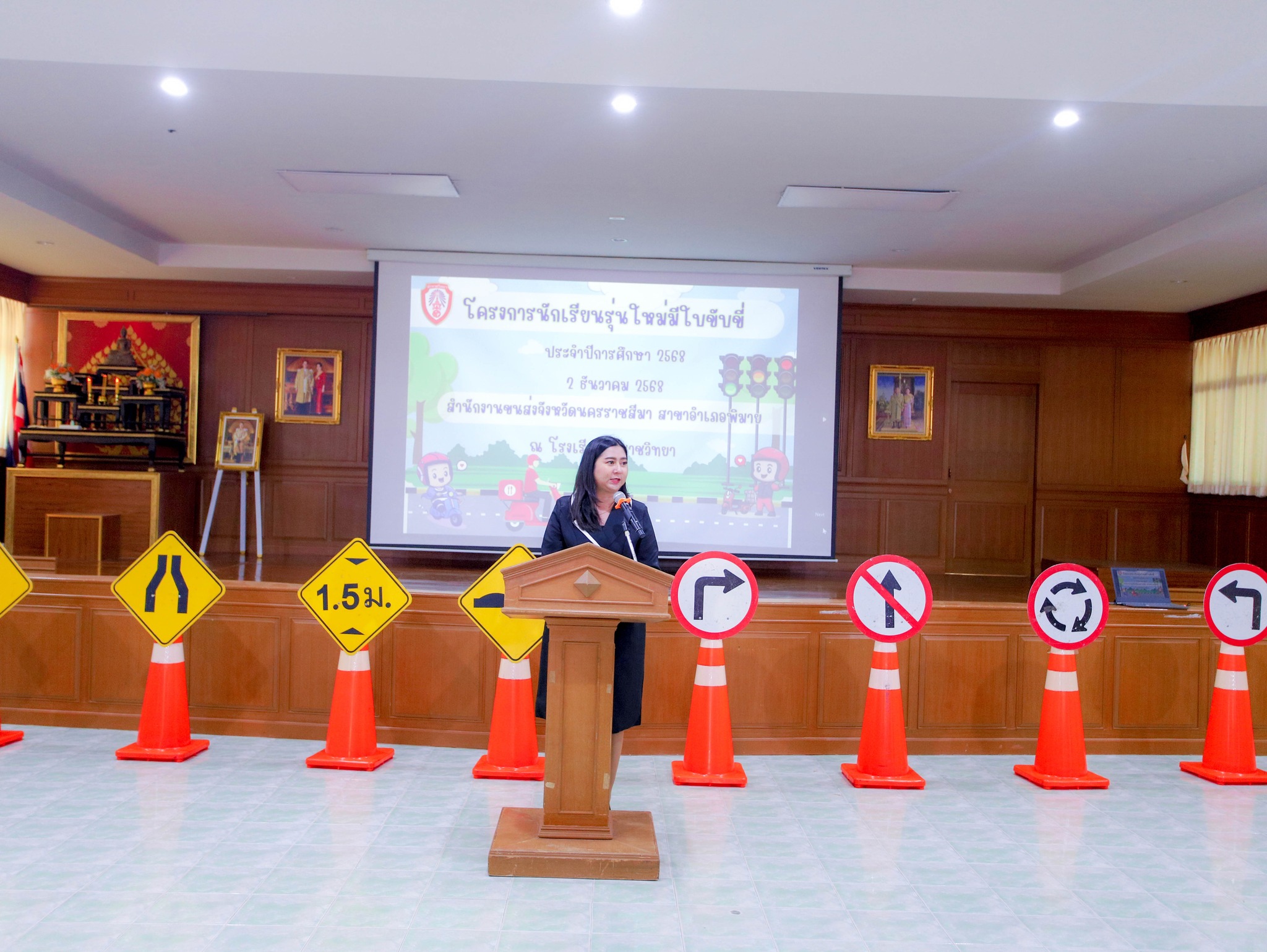 วันที่ 2 ธันวาคม พ.ศ. 2568 ดร.ศราวุธ ศรีหาบุญทัน ผู้อำนวยการโรงเรียนจักราชวิทยา มอบหมายให้ นางสาวพัชรวลี ทวรรณกุล รองผู้อำนวยการกลุ่มบริหารทั่วไป เป็นประธานกล่าวเปิดโครงการนักเรียนรุ่นใหม่มีใบขับขี่ประจำปีการศึกษา 2568 ดำเนินงานโดย งานขับขี่ปลอดภัย กลุ่มบริหารทั่วไป ร่วมกับ สำนักงานขนส่งจังหวัดนครราชสีมา สาขาอำเภอพิมาย การจัดโครงการครั้งนี้มีวัตถุประสงค์เพื่อ ให้นักเรียนได้รับความรู้และความเข้าใจเกี่ยวกับกฎหมายที่เกี่ยวข้องกับการขับขี่ปลอดภัย สามารถขอรับใบอนุญาตขับขี่ได้อย่างถูกต้องตามกฎหมาย รวมทั้งส่งเสริมจิตสำนึก มารยาทในการใช้รถใช้ถนน ตลอดจนการปฏิบัติตนเมื่อเกิดเหตุฉุกเฉิน และการให้ความช่วยเหลือเบื้องต้นให้กับนักเรียน ทั้งนี้ มีนักเรียนเข้าร่วมการอบรมจำนวน 50 คน ณ หอประชุมเล็ก โรงเรียนจักราชวิทยา อำเภอจักราช จังหวัดนครราชสีมา
