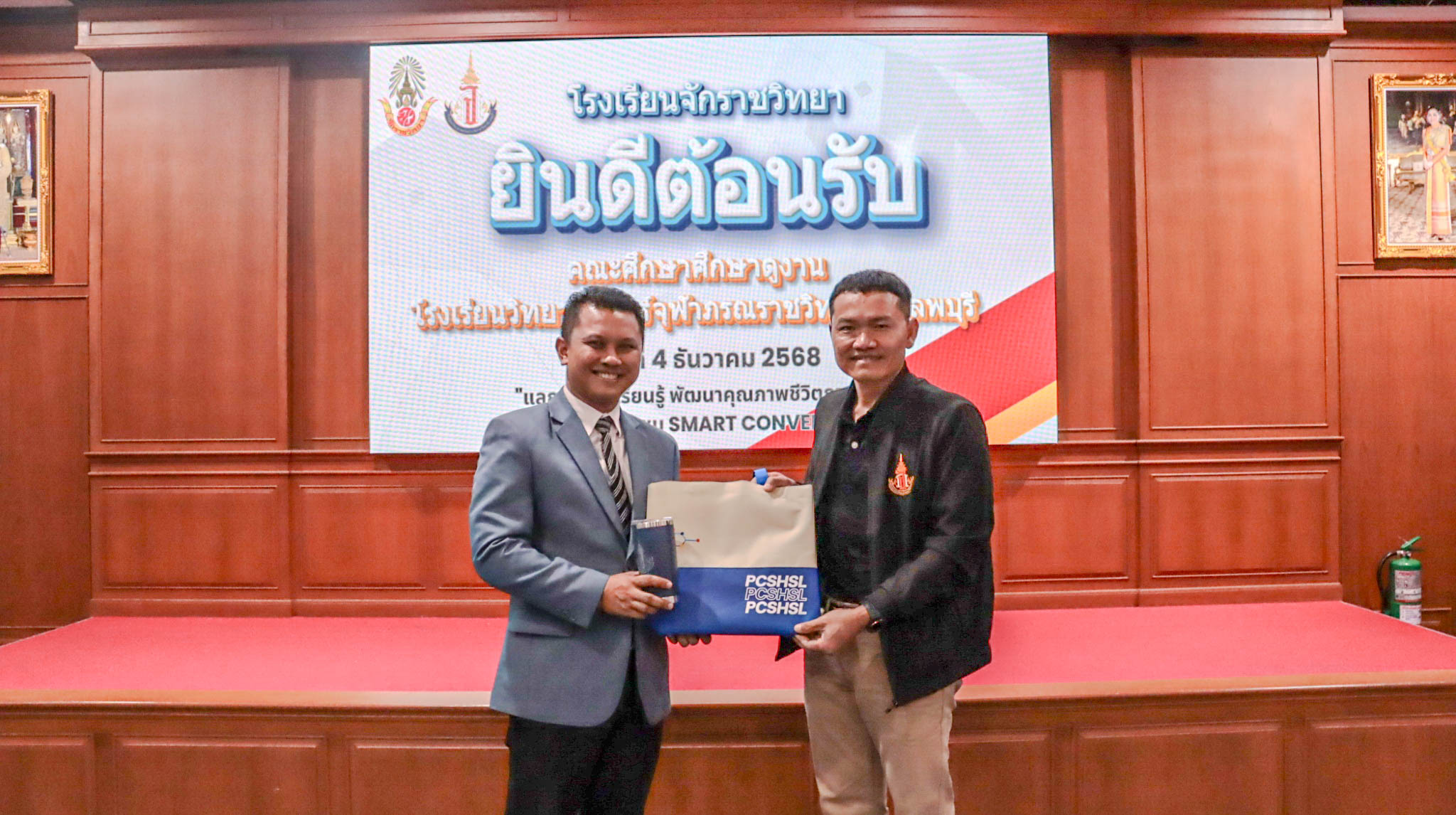 วันที่ 4 ธันวาคม พ.ศ. 2568 โรงเรียนจักราชวิทยา นำโดย ดร.ศราวุธ ศรีหาบุญทัน ผู้อำนวยการโรงเรียนจักราชวิทยา พร้อมด้วย รองผู้อำนวยการโรงเรียน และคณะครู ให้การต้อนรับคณะศึกษาดูงานจากโรงเรียนวิทยาศาสตร์จุฬาภรณ์ราชวิทยาลัย ลพบุรี ในโอกาสเข้าศึกษาดูงานและแลกเปลี่ยนเรียนรู้ด้านการพัฒนาคุณภาพชีวิตการทำงาน การศึกษาดูงานในครั้งนี้เป็นโอกาสอันดีในการเสริมสร้างความร่วมมือทางวิชาการและการพัฒนาศักยภาพบุคลากรระหว่างสองสถานศึกษา อันจะนำไปสู่การยกระดับคุณภาพการจัดการศึกษาให้มีประสิทธิภาพมากยิ่งขึ้น ทั้งนี้ การดำเนินกิจกรรมดังกล่าวจัดขึ้น ณ ห้อง Smart Convention โรงเรียนจักราชวิทยา อำเภอจักราช จังหวัดนครราชสีมา