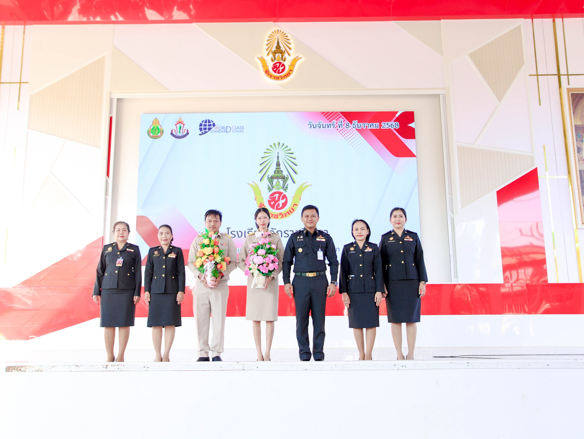 วันที่ 8 ธันวาคม พ.ศ. 2568 ดร.ศราวุธ ศรีหาบุญทัน ผู้อำนวยการโรงเรียนจักราชวิทยา พร้อมด้วย รองผู้อำนวยการโรงเรียน คณะครู บุคลากรทางการศึกษา และนักเรียนโรงเรียนจักราชวิทยา ร่วมให้การต้อนรับและมอบช่อดอกไม้แสดงความยินดีกับ นางสาวปัญฑิตา เชาว์มะเริง เนื่องในโอกาสได้รับการบรรจุแต่งตั้งให้ดำรงตำแหน่ง ครูผู้ช่วย เอกภาษาอังกฤษ กลุ่มสาระการเรียนรู้ภาษาต่างประเทศ พร้อมกันนี้ ได้ร่วมแสดงความยินดีกับ นายธัญพิสิษฐ์ อ่อนศรี ครู กลุ่มสาระการเรียนรู้วิทยาศาสตร์และเทคโนโลยี เนื่องในโอกาสย้ายไปดำรงตำแหน่ง ครู ณ โรงเรียนสุรนารีวิทยา อำเภอเมือง จังหวัดนครราชสีมา ในโอกาสนี้ โรงเรียนจักราชวิทยาขอแสดงความยินดีอย่างยิ่งต่อทั้งสองท่าน พร้อมขอให้ประสบความสำเร็จในเส้นทางวิชาชีพ และปฏิบัติหน้าที่ราชการด้วยความเจริญก้าวหน้าและมั่นคงสืบไป ณ โดม 42 ปี อนุสรณ์ โรงเรียนจักราชวิทยา อำเภอจักราช จังหวัดนครราชสีมา