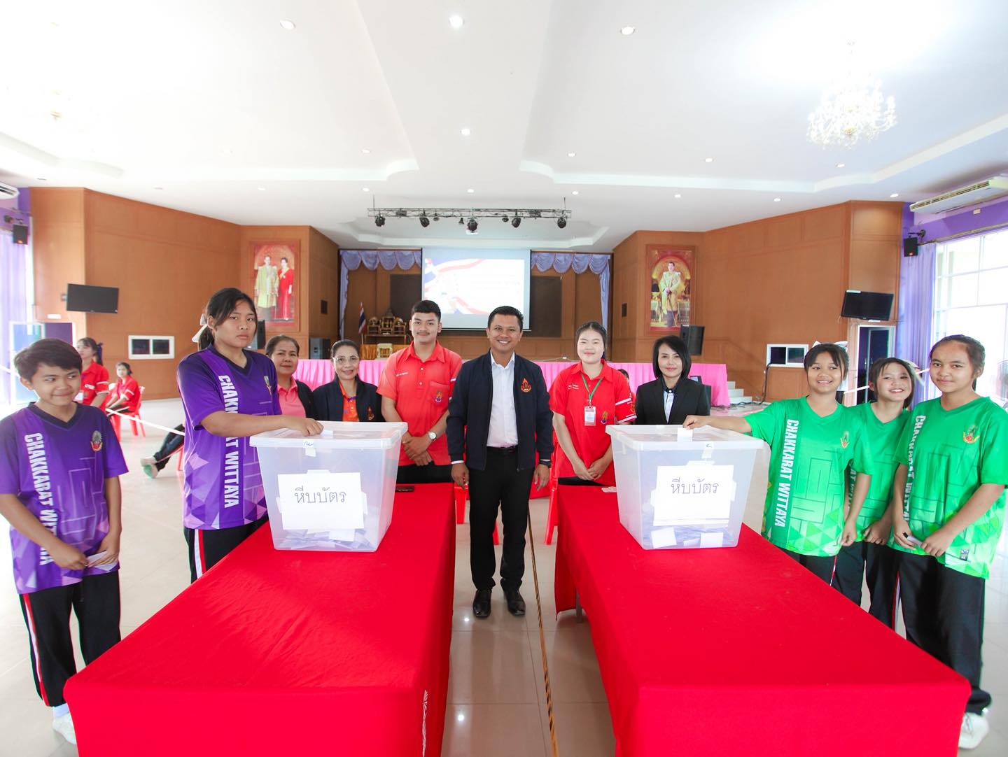 วันที่ 11 กุมภาพันธ์ พ.ศ. 2569 โรงเรียนจักราชวิทยา โดยการนำของ ดร.ศราวุธ ศรีหาบุญทัน ผู้อำนวยการโรงเรียนจักราชวิทยา ได้จัดกิจกรรมการเลือกตั้งประธานสภานักเรียน ประจำปีการศึกษา 2569 ดำเนินงานโดยงานสภานักเรียน โดยมีรองผู้อำนวยการโรงเรียน คณะครู บุคลากรทางการศึกษา และนักเรียนโรงเรียนจักราชวิทยา เข้าร่วมกิจกรรมและร่วมใช้สิทธิ์เลือกตั้งโดยพร้อมเพรียงกัน การจัดกิจกรรมครั้งนี้มีวัตถุประสงค์เพื่อส่งเสริมกระบวนการเรียนรู้ตามวิถีประชาธิปไตย ปลูกฝังให้นักเรียนตระหนักถึงสิทธิ หน้าที่ และความรับผิดชอบของตนเอง ตลอดจนเสริมสร้างภาวะผู้นำ ความมีระเบียบวินัย และการมีส่วนร่วมในการพัฒนาสถานศึกษาให้เป็นไปอย่างสร้างสรรค์และโปร่งใส กิจกรรมจัดขึ้น ณ หอประชุม 25 ปี อนุสรณ์ โรงเรียนจักราชวิทยา อำเภอจักราช จังหวัดนครราชสีมา