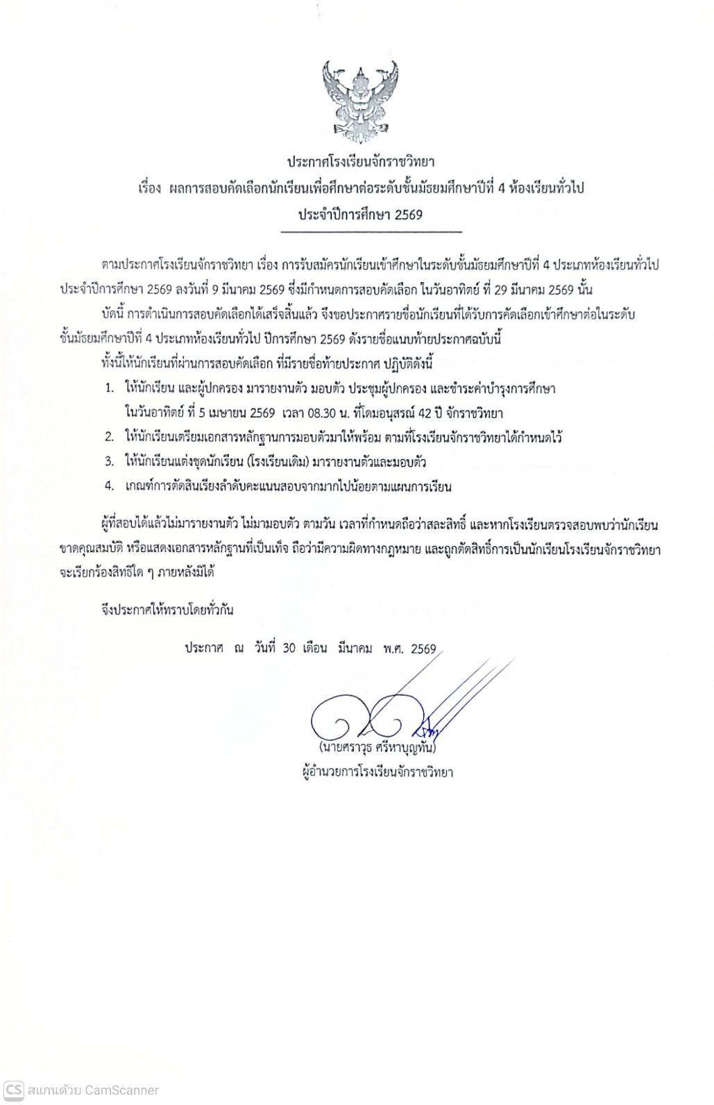 ข่าวประชาสัมพันธ์ ประกาศผลสอบคัดเลือก ม.4 ห้องเรียนทั่วไป ปีการศึกษา 2569 โรงเรียนจักรราชวิทยา 2485 Views 30 March 2026