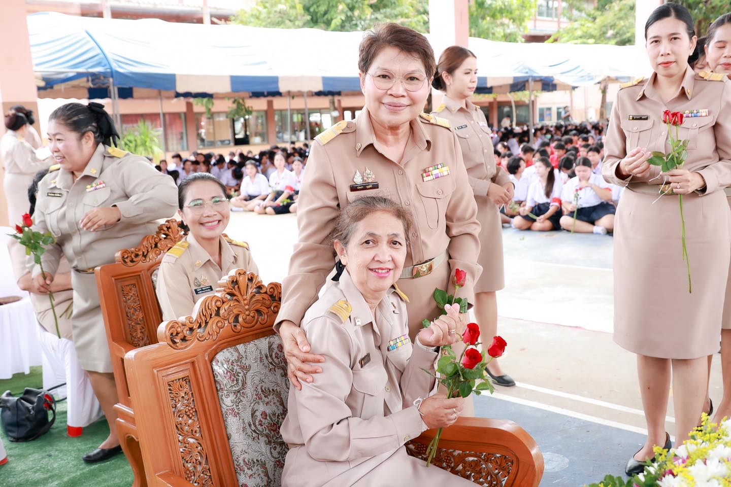 วันที่ 15 กันยายน พ.ศ. 2568 ดร.ศราวุธ ศรีหาบุญทัน ผู้อำนวยการโรงเรียนจักราชวิทยา เป็นประธานในพิธีมุทิตาจิตและเชิดชูเกียรติผู้เกษียณอายุราชการ ประจำปี 2568 พร้อมด้วย รองผู้อำนวยการโรงเรียน ข้าราชการครู บุคลากรทางการศึกษา และนักเรียนโรงเรียนจักราชวิทยา เข้าร่วมแสดงมุทิตาจิตอย่างพร้อมเพรียง ในโอกาสนี้ ได้ร่วมแสดงความรัก ความเคารพ และความกตัญญูกตเวทีต่อข้าราชการครูผู้เกษียณอายุราชการ จำนวน 2 ท่าน ได้แก่ นางศิริรัตน์ โชติกลาง ครูกลุ่มสาระการเรียนรู้การงานอาชีพ และนางวรรณวไล จันทาบ ครูกลุ่มสาระการเรียนรู้ภาษาไทย ทั้งสองท่านเป็นแบบอย่างของข้าราชการครูที่ปฏิบัติหน้าที่ด้วยความซื่อสัตย์สุจริต ความตั้งใจมั่น และความมุ่งมั่นในการพัฒนาคุณภาพการศึกษาอย่างต่อเนื่อง ด้วยความเพียรพยายาม เสียสละ และอุทิศตนให้กับการเรียนการสอนตลอดระยะเวลาการรับราชการ บรรยากาศภายในพิธีอบอวลไปด้วยความอบอุ่นและความซาบซึ้งใจ เป็นการแสดงออกถึงความรัก ความเคารพ และความผูกพันอันระหว่างครู นักเรียน และบุคลากร ซึ่งนับเป็นช่วงเวลาแห่งความทรงจำที่มีคุณค่าและงดงาม ณ โดม 42 ปี อนุสรณ์ โรงเรียนจักราชวิทยา อำเภอจักราช จังหวัดนครราชสีมา