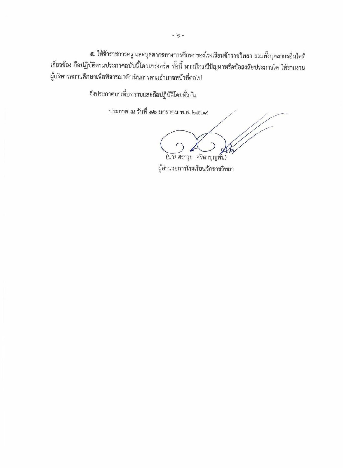 โรงเรียนจักราชวิทยา จึงขอความร่วมมือทุกฝ่ายโปรดถือปฏิบัติตามประกาศดังกล่าวโดยเคร่งครัด