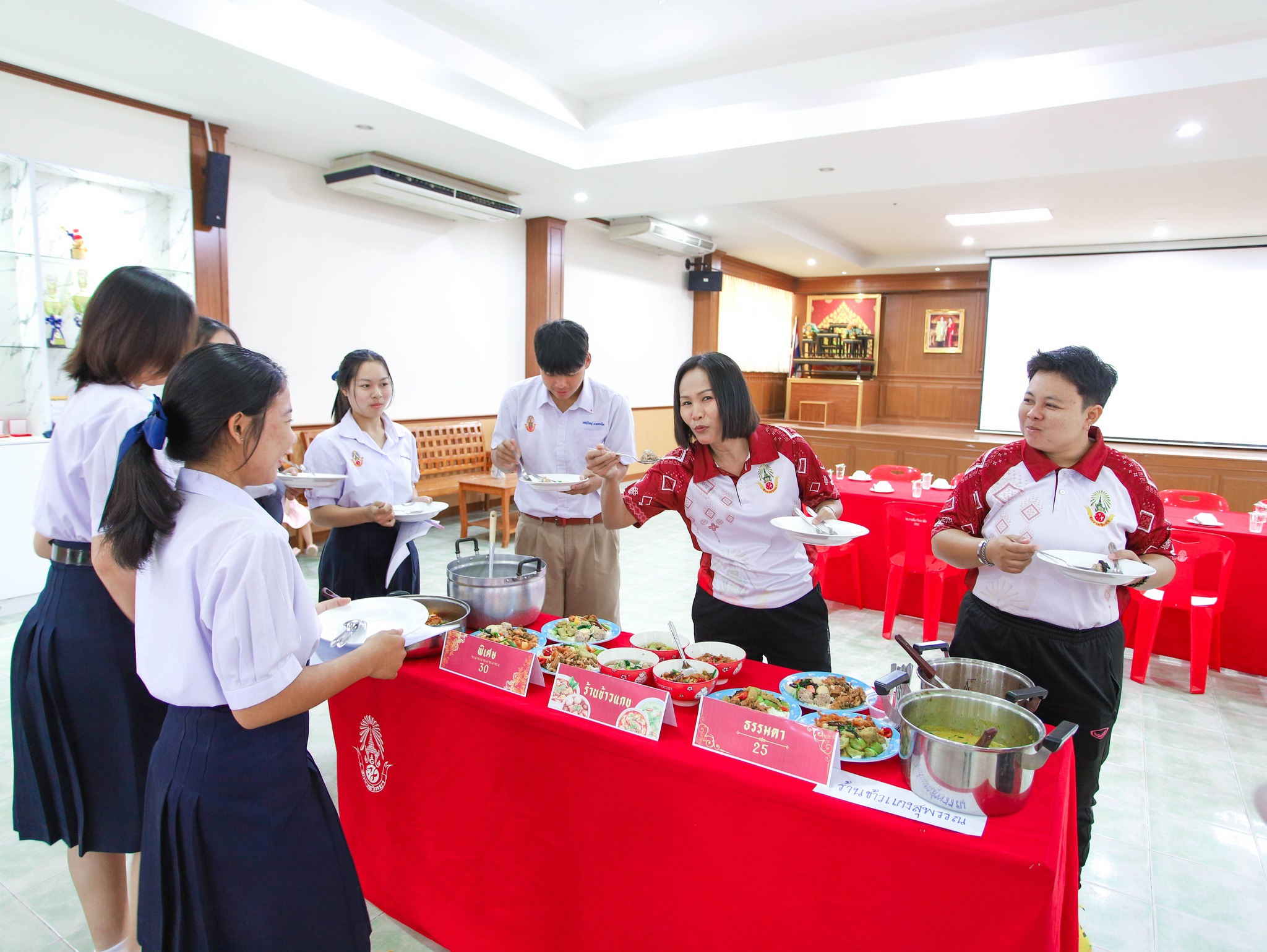 วันที่ 16 มีนาคม พ.ศ. 2569 โรงเรียนจักราชวิทยา โดยการนำของ ดร.ศราวุธ ศรีหาบุญทัน ผู้อำนวยการโรงเรียนจักราชวิทยา ได้ดำเนินการพิจารณาคัดเลือกร้านค้าจำหน่ายอาหารภายในโรงเรียนจักราชวิทยา ประจำปีการศึกษา 2569 โดยมี นางสาวพัชรวลี ทวรรณกุล รองผู้อำนวยการโรงเรียน พร้อมด้วย คณะครู และนักเรียนตัวแทน ร่วมเป็นคณะกรรมการในการตรวจสอบคุณสมบัติและข้อปฏิบัติของผู้ประกอบการร้านค้า รวมถึงการตรวจสอบคุณภาพอาหารที่นำมาจำหน่ายภายในโรงเรียน การพิจารณาในครั้งนี้มีวัตถุประสงค์เพื่อ คัดเลือกร้านค้าที่มีคุณภาพ สามารถให้บริการอาหารแก่ นักเรียน คณะครู และบุคลากรของโรงเรียนได้อย่างเหมาะสม โดยคำนึงถึงคุณภาพอาหาร ความสะอาดถูกสุขลักษณะ ราคาที่เป็นธรรม ตลอดจนความสอดคล้องตามหลักโภชนาการและแนวนโยบายที่เกี่ยวข้อง ณ หอประชุมเล็ก โรงเรียนจักราชวิทยา อำเภอจักราช จังหวัดนครราชสีมา